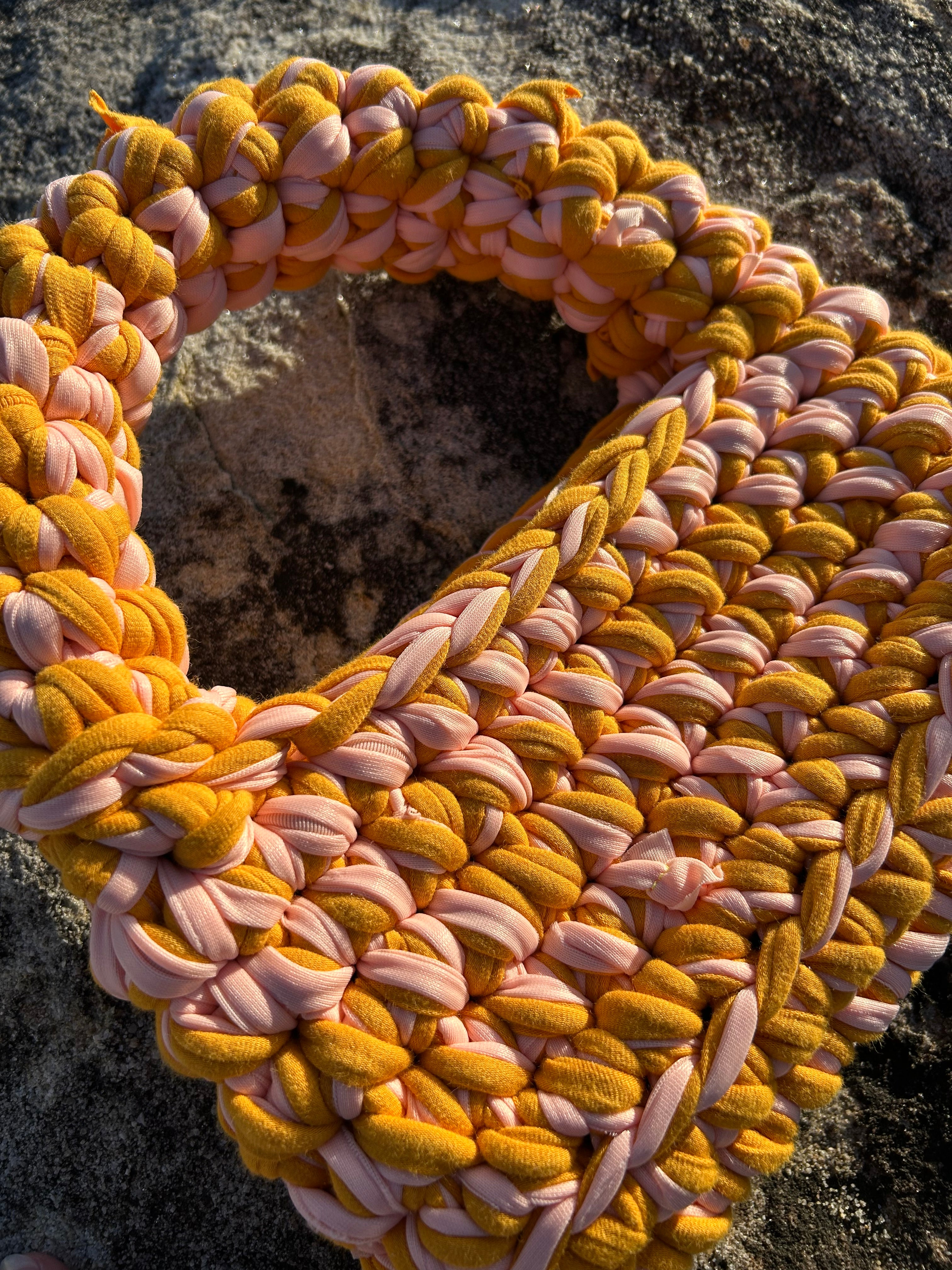 Handmade one off crochet bags and homewares crafted from reclaimed textiles. Made slow, built to last, and designed to reduce waste with purpose.